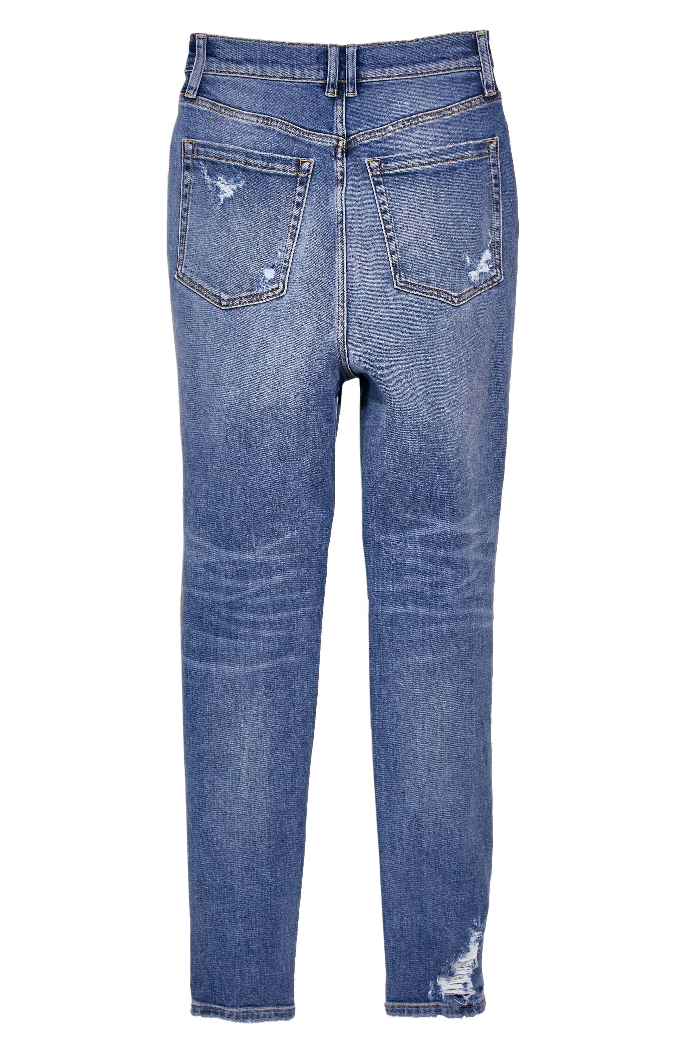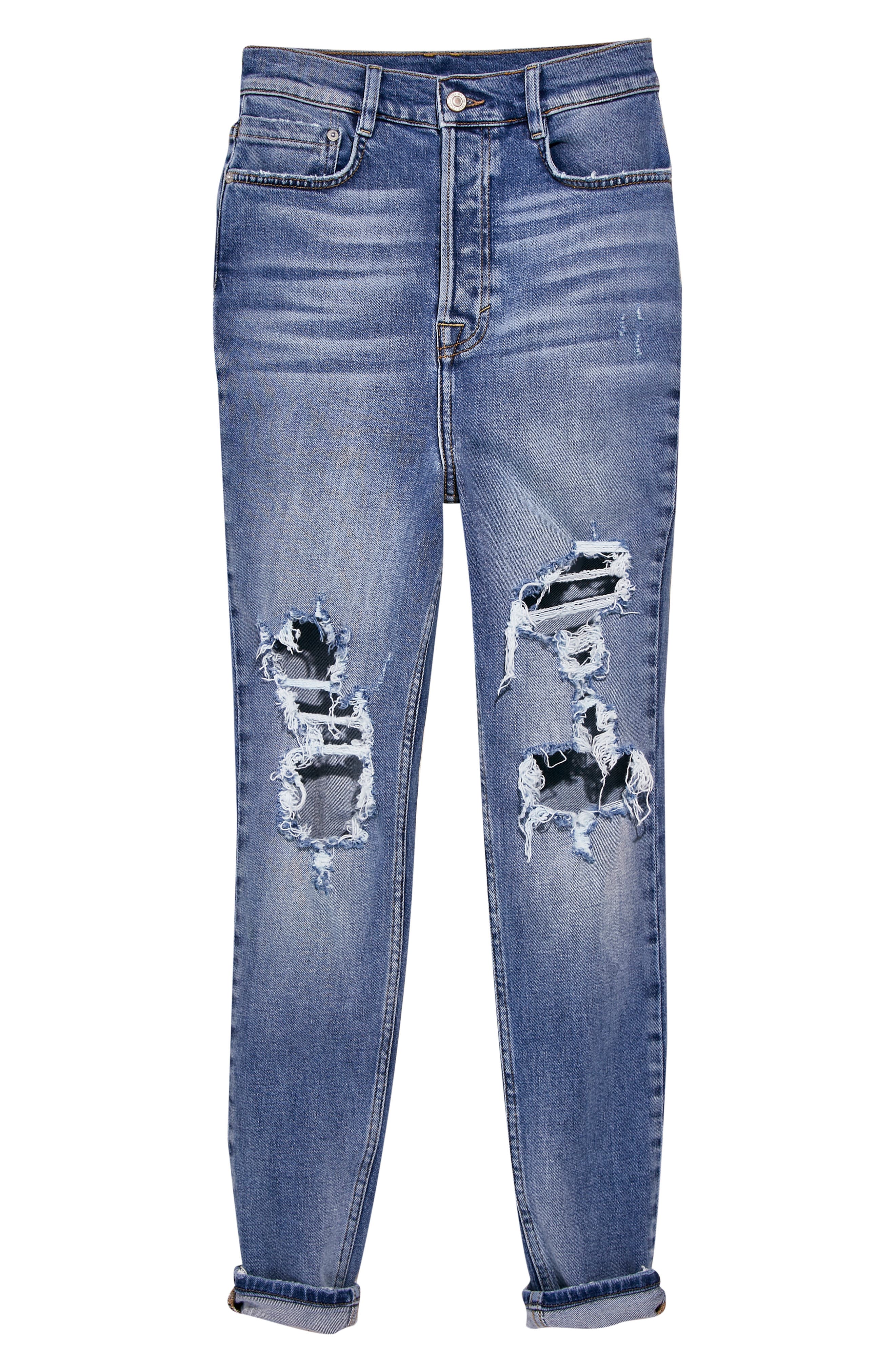 A goes-with-anything classic these retro-inspired skinny jeans from our We The Free collection are featured in a super high-rise silhouette and semi-stretch denim fabrication for the most flattering fit. A super-high waist tops these slim faded jeans ripped down the front for an instant lived-in vibe thatll go with so much in your closet and your plans. 58 Cotton 32 Polyester 10 Elastane Coating.
